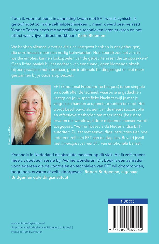 Yvonne Toeset is dé Nederlandse EFT-autoriteit. Zij laat met eenvoudige instructies zien hoe iedereen zelf met EFT aan de slag kan. Bevrijd jezelf met Innerlijke rust met EFT van emotionele ballast.