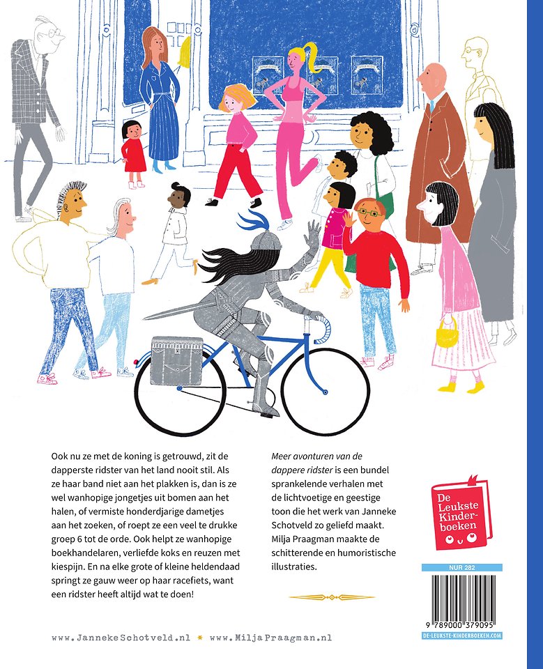 Meer avonturen van de dappere ridster is een bundel sprankelende verhalen met de kenmerkende lichtvoetige en zeer geestige toon die het werk van Janneke Schotveld zo geliefd maakt. Milja Praagman maakte de schitterende en humoristische illustraties. Een feest om voor te lezen vanaf 6 jaar of zelf te lezen vanaf 7 jaar.