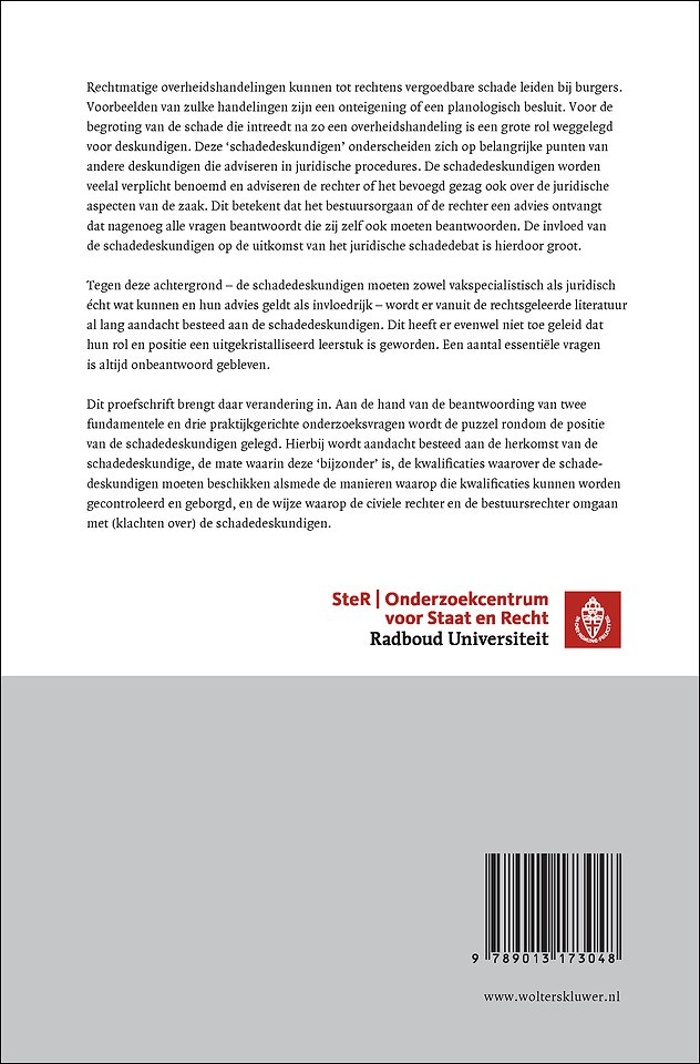 Vanuit de rechtsgeleerde literatuur en rechtspraak wordt er al decennialang kritisch gereflecteerd op de inzet en rol van deskundigen die worden ingeschakeld in het kader van de schadebegroting na een rechtmatige overheidshandeling. In De (bijzondere) positie van onteigenings- en nadeelcompensatiedeskundigen wordt hun inzet en rol voor het eerst fundamenteel en wetenschappelijk onderzocht.