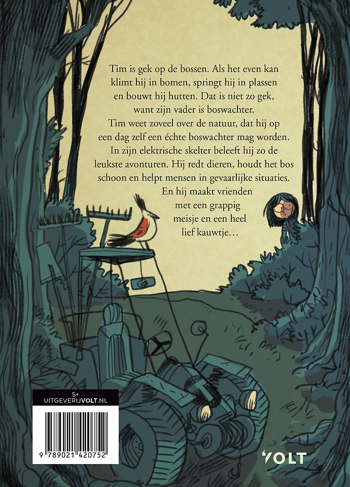 Tims vader is boswachter. Hij heeft Tim van alles geleerd over het bos en de dieren die er wonen. Wanneer Tim voor zijn verjaardag een echt boswachtersuniform én een ‘Turbotrapper’ cadeau krijgt, is hij net als zijn vader een echte boswachter. En in het bos is altijd genoeg te doen! Zo kun je hutten bouwen en in plassen stampen. Maar lukt het Tim ook om een gewonde kauw er weer bovenop te helpen? Gelukkig krijgt hij hulp van zijn vriendinnetje Tippi die misschien óók wel boswachter wil worden.