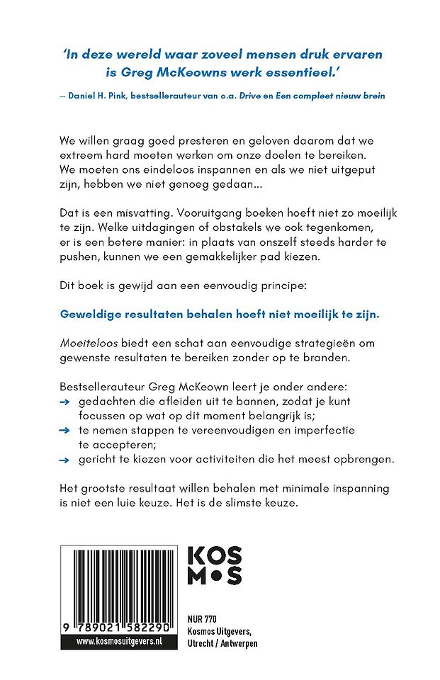 'Moeiteloos', de Nederlandse editie van 'Effortless' van Greg McKeown, is gewijd aan een eenvoudig principe: geweldige resultaten behalen hoeft niet moeilijk te zijn.