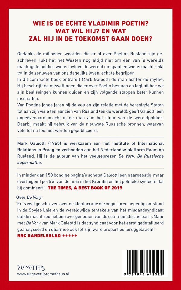 Van Poetins jonge jaren bij de KGB en zijn echte relatie met de Verenigde Staten tot aan zijn visie ten aanzien van Rusland (en de wereld), geeft Galeotti een ongeëvenaard inzicht in de man aan het stuur van de wereldpolitiek. Daarbij maakt hij gebruik van de nieuwste Russische bronnen, waarvan vele tot nu toe niet werden gepubliceerd.