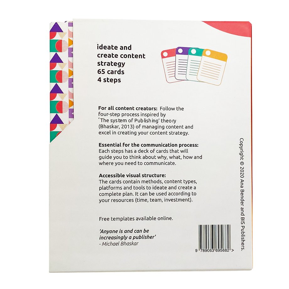 Ana Bender recently achieved academic Distinction at London College of Communication (University of the Arts London) for distilling and packaging MA Publishing’s expertise at managing content into a deck of cards, the Creative Content Kit.