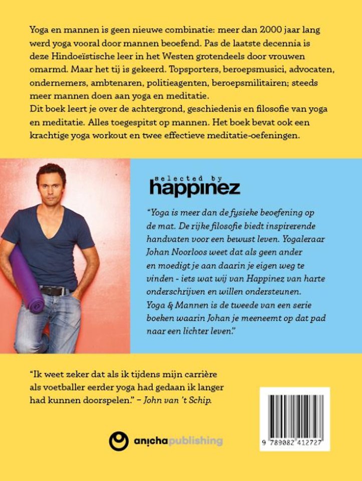 "Yoga is meer dan de fysieke beoefening op de mat. De rijke filosofie biedt inspirerende handvaten voor een bewust leven. Yogaleraar Johan Noorloos weet dat als geen ander en moedigt je aan daarin je eigen weg te vinden - iets wat wij van Happinez van harte onderschrijven en willen ondersteunen. Yoga & Mannen is de tweede van een serie boekjes waarin Johan je meeneemt op dat pad naar een lichter leven."