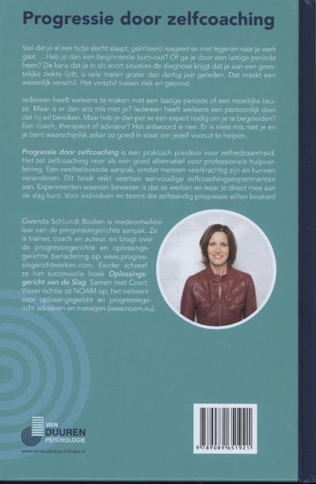 Progressie door zelfcoaching is een praktisch pleidooi voor zelfredzaamheid. Het zet zelfcoaching neer als een goed alternatief voor professionele hulpverlening. Een veelbelovende aanpak, omdat mensen veerkrachtig zijn en kunnen veranderen. Dit boek reikt veertien eenvoudige zelfcoachingsexperimenten aan. Experimenten waarvan bewezen is dat ze werken en waar u direct mee aan de slag kunt. Voor individuen en teams die zelfstandig progressie willen boeken!