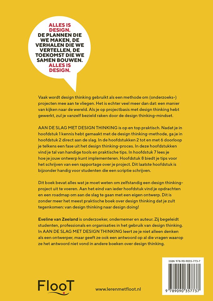 Eveline van Zeeland is onderzoeker, ondernemer en auteur. Zij begeleidt studenten, professionals en organisaties in het gebruik van design thinking. In 'Aan de slag met Design Thinking' leert ze je niet alleen denken als een ontwerper, maar geeft ze ook een antwoord op al die vragen waarop ze het antwoord niet vond in andere boeken over design thinking.