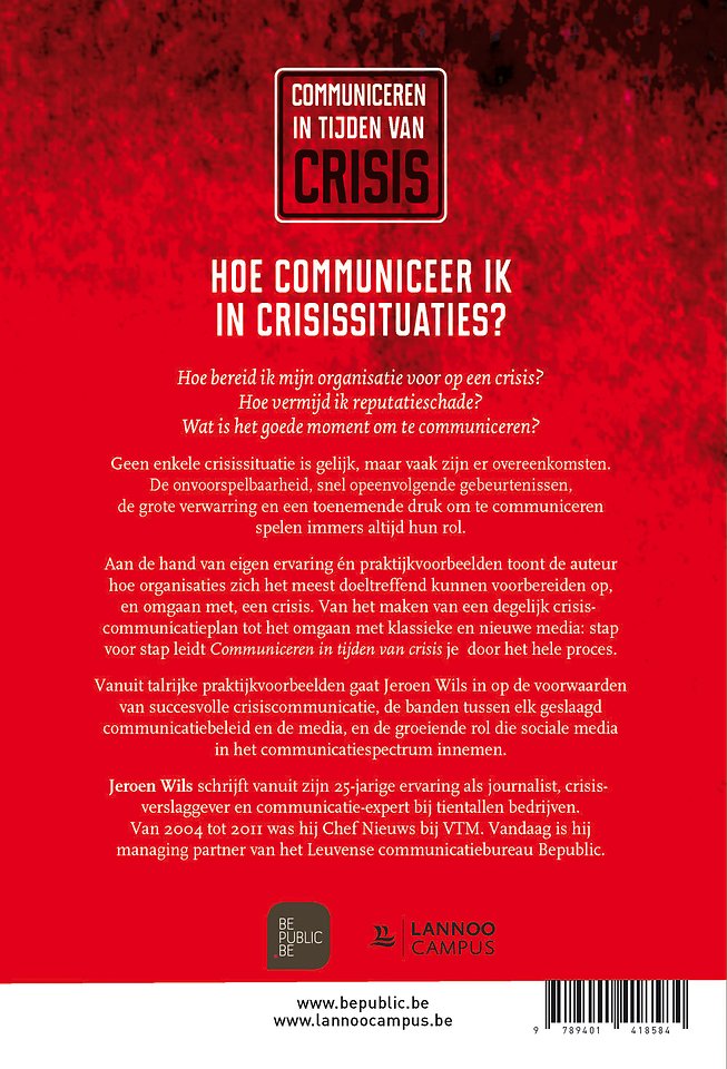 Vanuit talrijke praktijkvoorbeelden gaat Jeroen Wils in op de voorwaarden van succesvolle crisiscommunicatie, de banden tussen elk geslaagd communicatiebeleid en de media, en de groeiende rol die sociale media in het communicatiespectrum innemen.