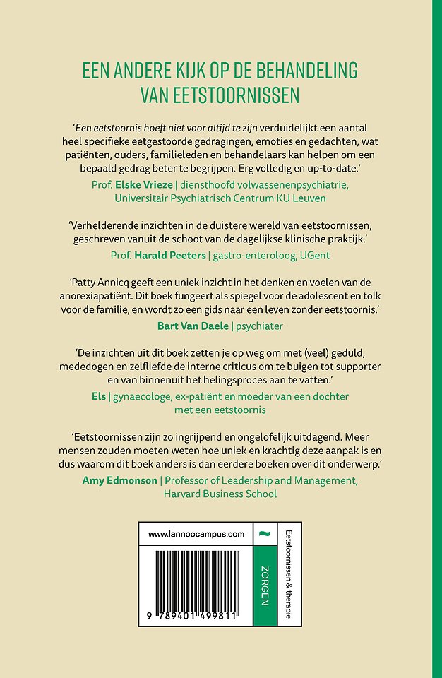 Eetstoornissen zijn zo ingrijpend en ongelofelijk uitdagend. Meer mensen zouden moeten weten hoe uniek en krachtig deze aanpak is en dus waarom dit boek anders is dan eerdere boeken over dit onderwerp. - Amy Edmonson | Professor of Leadership and Management, Harvard Business School