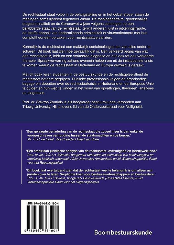 Met dit boek leren studenten in de bestuurskunde en de rechtsgeleerdheid de rechtsstaat beter te begrijpen. Publieke professionals krijgen de broodnodige bagage om debatten over de crisis in Nederland en de Europese Unie te duiden en hun weg te vinden in het woud van opvattingen, theorieën, analyses en diagnoses.
