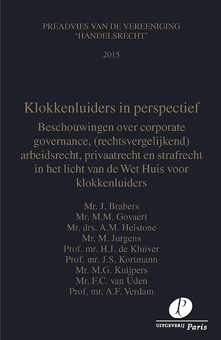De preadviezen 2015 voor de Vereeniging Handelsrecht staan geheel in het teken van het fenomeen ‘Klokkenluiders’. Daarmee wordt gedoeld op personen die op een gegeven moment publieke aandacht vragen voor een gebeurtenis of toestand in een organisatie waarop naar hun inzicht niet adequaat is gereageerd en die juist ook van vanwege de maatschappelijke implicaties wel aandacht vergt. De klokkenluider heeft zich inmiddels een plaats verworven in het denken over corporate governance en is daarvan een integraal onderdeel geworden. Dat geldt in het buitenland, maar evenzeer in Nederland.