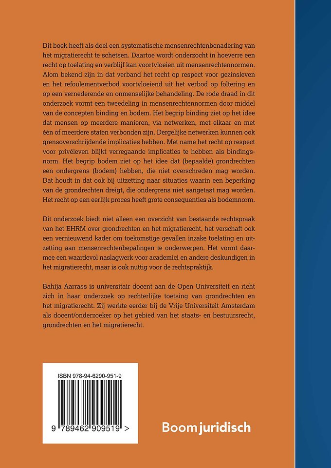 Dit boek heeft als doel een systematische mensenrechten benadering van het migratierecht te schetsen. Daartoe wordt onderzocht in hoeverre een recht op toelating en verblijf kan voort vloeien uit mensenrechten normen. Alom bekend zijn in dat verband het recht op respect voor gezinsleven en het refoulementverbod voortvloeiend uit het verbod op foltering en op een vernederende en onmenselijke behandeling.