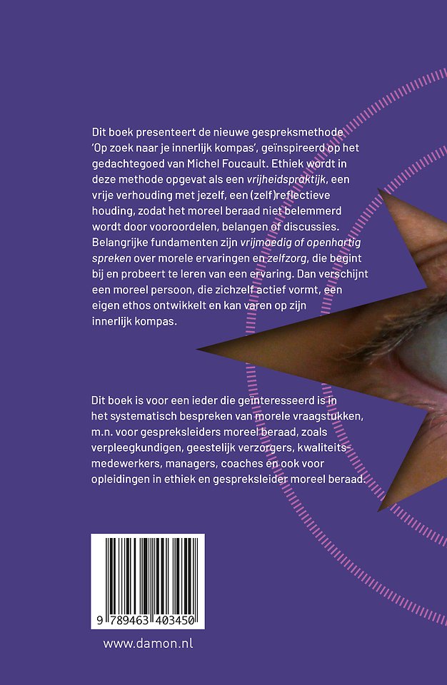 'Op zoek naar je innerlijk kompas' presenteert een nieuwe gespreksmethode voor moreel beraad. Deze methode stimuleert de deelnemers hun eigen ethische handelen te onderzoeken en openhartig te spreken over hun eigen concrete ervaringen, met als doel het vormen van het ethisch kompas.