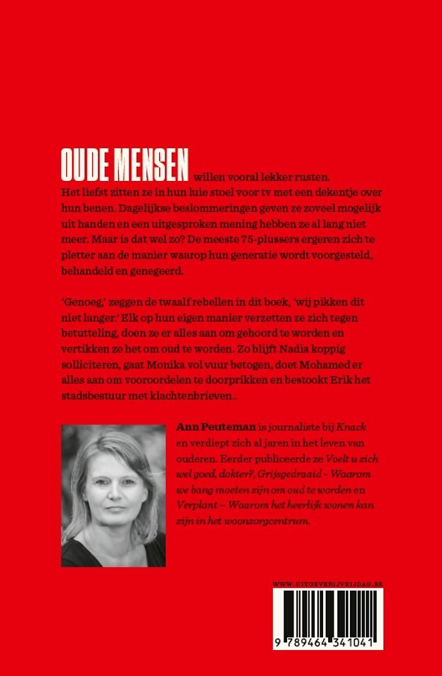Oude mensen willen vooral lekker rusten. Het liefst zitten ze in hun luie stoel voor tv met een dekentje over hun benen. Dagelijkse beslommeringen geven ze zoveel mogelijk uit handen en een uitgesproken mening hebben ze al lang niet meer. Maar is dat wel zo? De meeste 75-plussers ergeren zich te pletter aan de manier waarop hun generatie wordt voorgesteld, behandeld en genegeerd.
