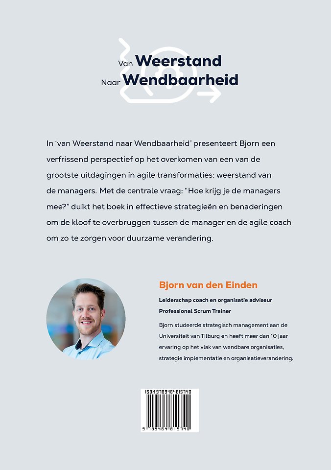 In 'van Weerstand naar Wendbaarheid' presenteert Bjorn een verfrissend perspectief op het overkomen van een van de grootste uitdagingen in agile transformaties: weerstand van de managers.
