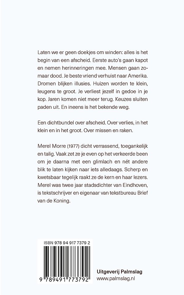 'Het bekende weg' van Merel Morre is een dichtbundel over afscheid. Over verlies, in het klein en in het groot. Over missen en raken.