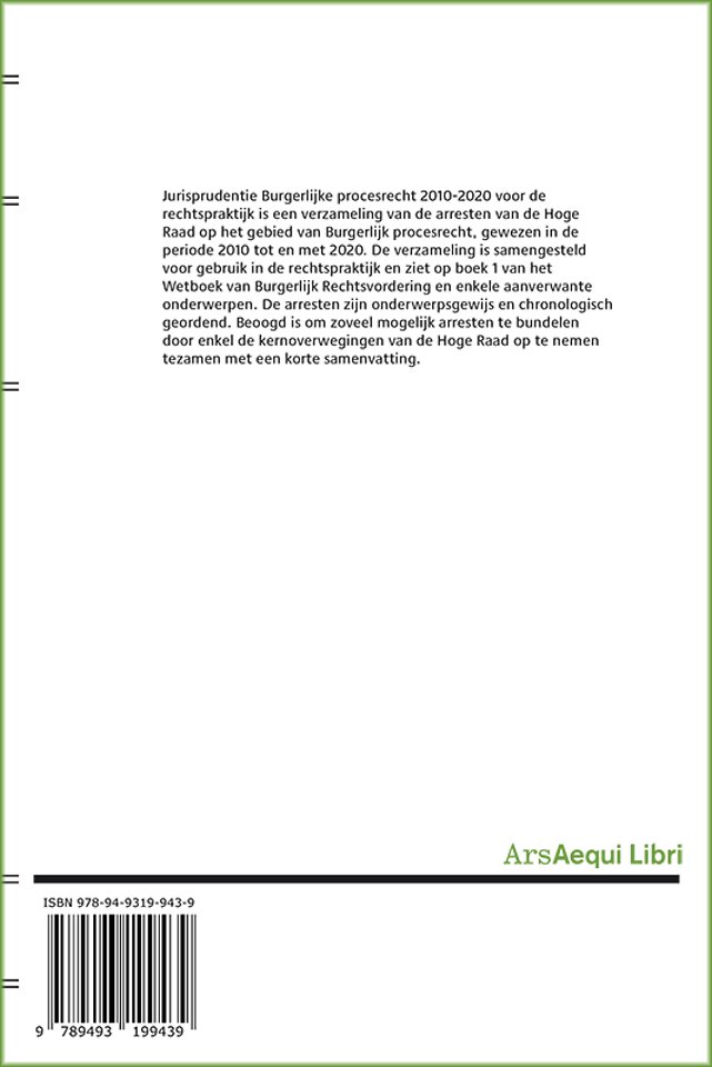 Jurisprudentie Burgerlijke procesrecht 2010-2020 voor de rechtspraktijk is een verzameling van de arresten van de Hoge Raad op het gebied van Burgerlijk procesrecht, gewezen in de periode 2010 tot en met 2020. De verzameling is speciaal samengesteld voor gebruik in de rechtspraktijk en ziet op boek 1 van het Wetboek van Burgerlijk Rechtsvordering en enkele aanverwante onderwerpen.