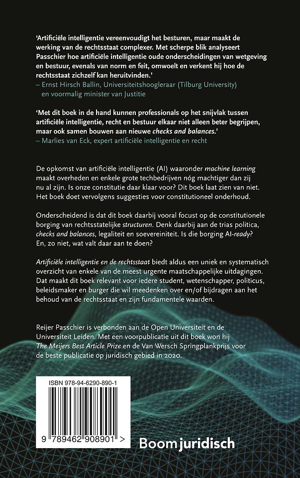 ‘Artificiële intelligentie vereenvoudigt het besturen, maar maakt de werking van de rechtsstaat complexer. Met scherpe blik analyseert Passchier hoe artificiële intelligentie oude onderscheidingen van wetgeving en bestuur, evenals van norm en feit, omwoelt en verkent hij hoe de rechtsstaat zichzelf kan heruitvinden.’ – Ernst Hirsch Ballin, Universiteitshoogleraar (Tilburg University) en voormalig minister van Justitie